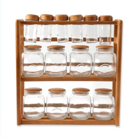 إستاند خشبي مع طقم علب بهارات 14 علبة